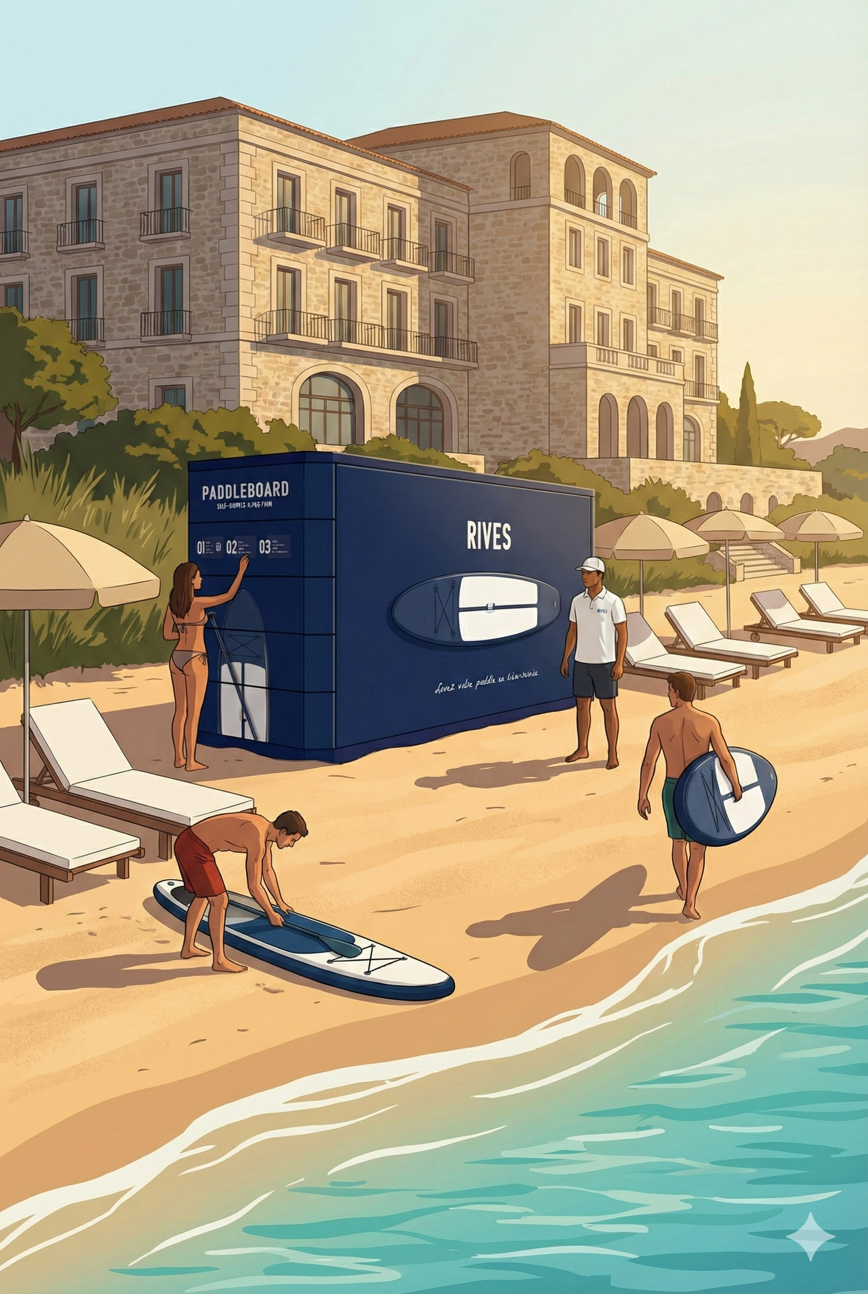 Le service RIVES offre à votre établissement une solution idéale pour proposer un nouveau service à votre clientèle. Grâce à nos stations et à notre application self-service, vos clients pourront profiter du paddle directement sur votre plage, sans que vous ayez à vous en soucier.